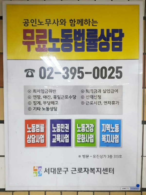 무료노동법률상담 받으러 홍제역으로 오세요~