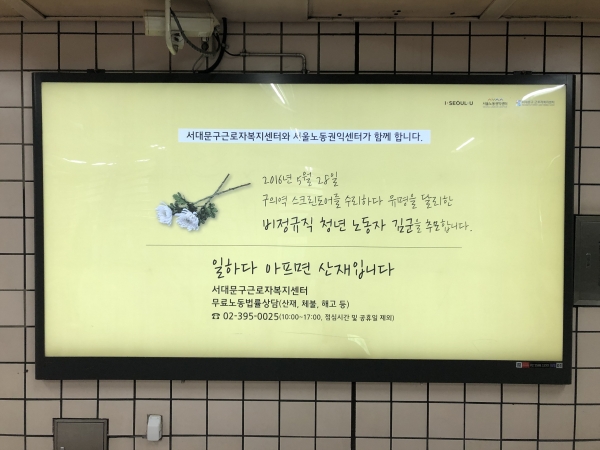 구의역 김군 추모광고(지하철 5호선 서대문역)